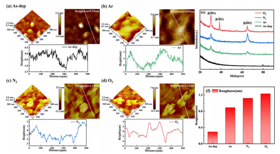 *氧化鎵薄膜在不同退火氣氛下的形貌和粗糙度 圖源網(wǎng)絡,侵刪